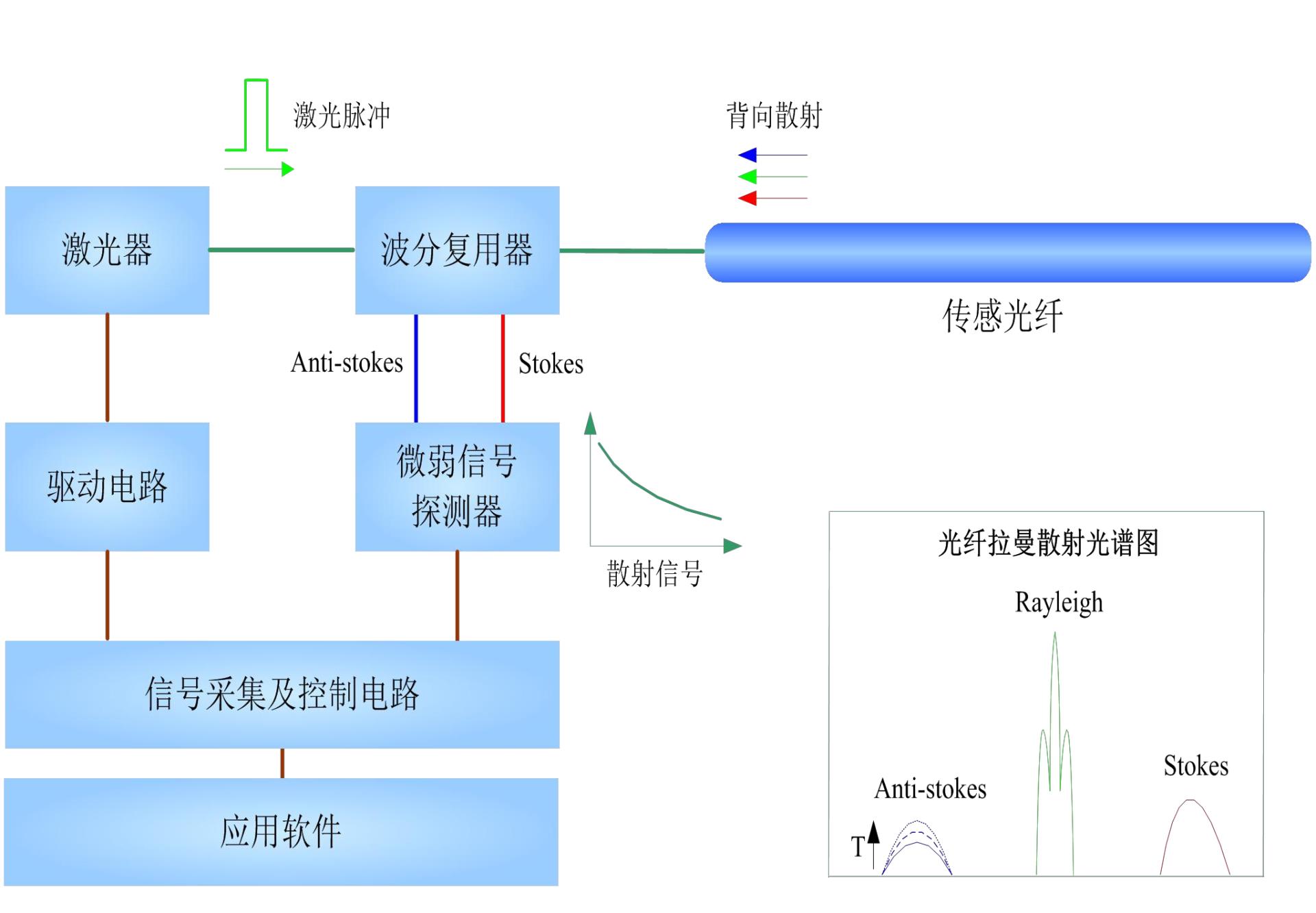 通過采用光時域反射技術(shù)和激光拉曼散射效應,探測出沿著光纖不同位置的溫度變化,并精確定位。